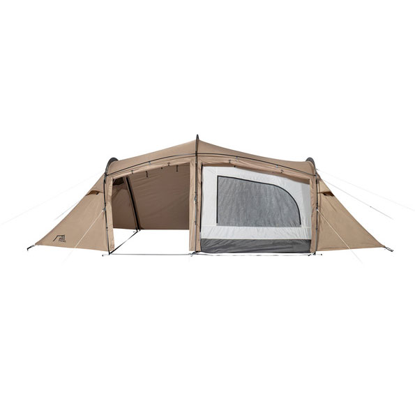 ドーム同様骨組みを通して設営するタイプで、サイズは大きい傾向にあります。 比較的設営が楽で天井高、床スペースも広く取れるため人気のテントです。
